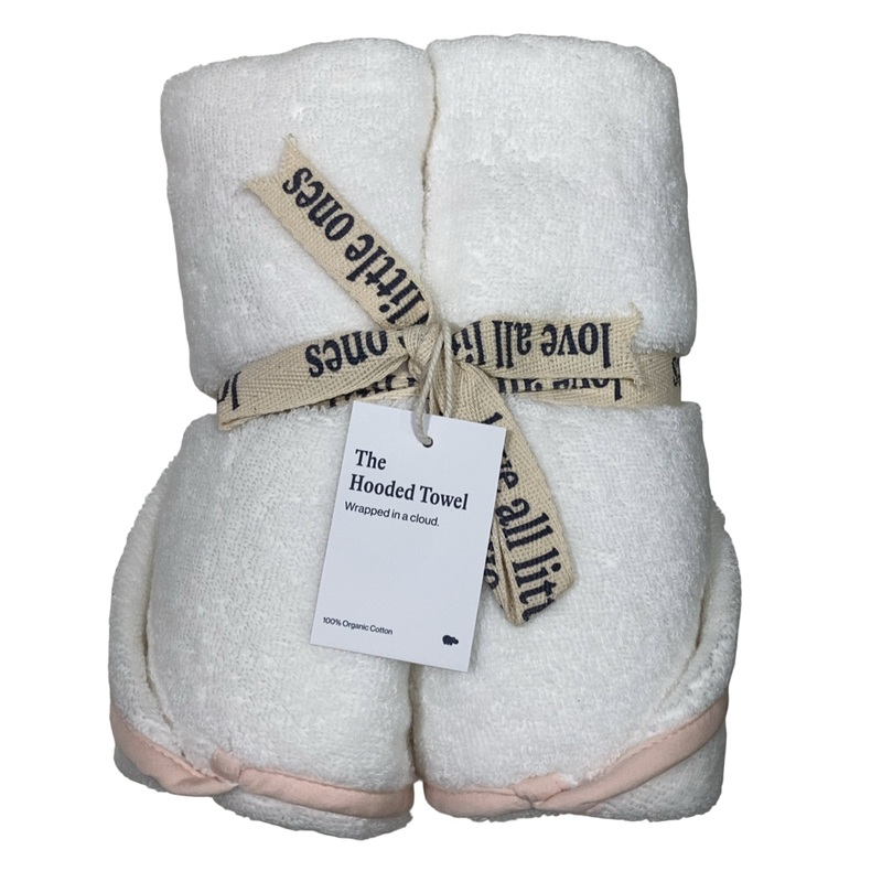 Cozy up in this organic cotton towel with hood after bath time.