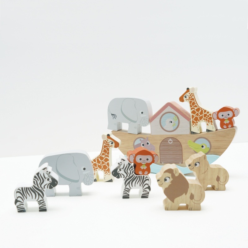 Introduce your little one to the wild with Le Toy Van's Noah's Balancing Ark. This hand-painted wooden toy features 10 colorful animals that encourage sorting, matching, and hand-eye coordination.Stack them on the ark to help develop cognitive skills and b