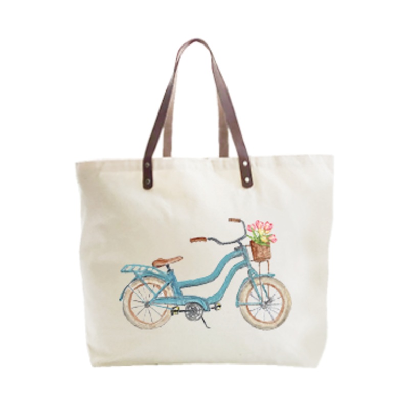light blue beach bike with tulips large tote