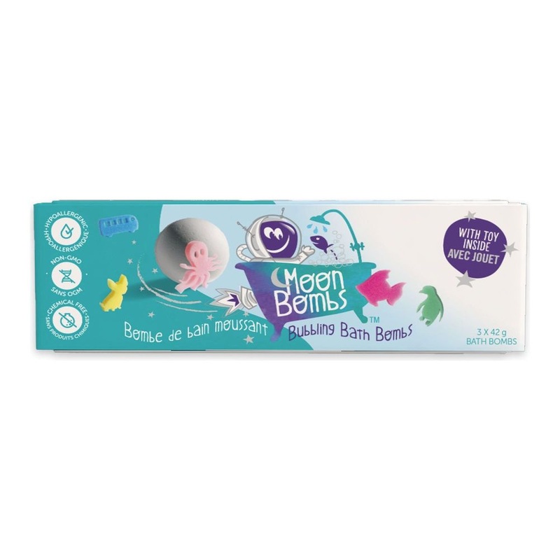 Loot Toy Company's hypo allergenic Moon Bombs also come with a toy inside. As the Moon Bomb dissolves in the tub, it releases a sponge character while leaving moisturizing bath bubbles.This product uses Sodium Lauryl Sulfoacetate (or SLSa), a natural extra