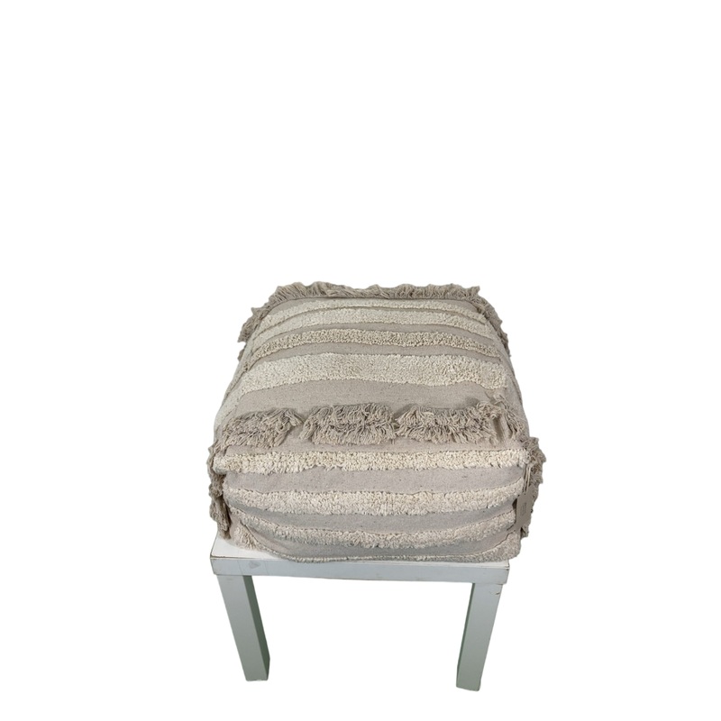 “Add a touch of comfort and texture to any room with this stylish pouf.”