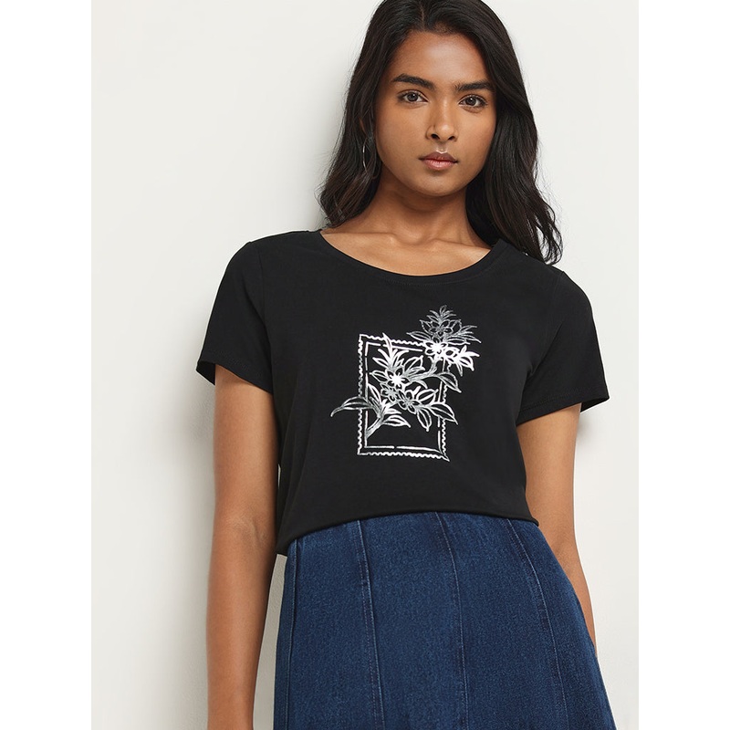 LOV Black Graphic Print Cotton T-Shirt
