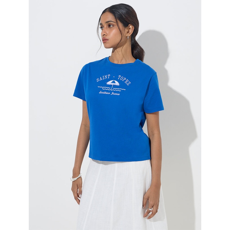 This blue t-shirt from LOV flaunts text designs at the front. Spun from pure-cotton, it is finished with a round neck and short sleeves.