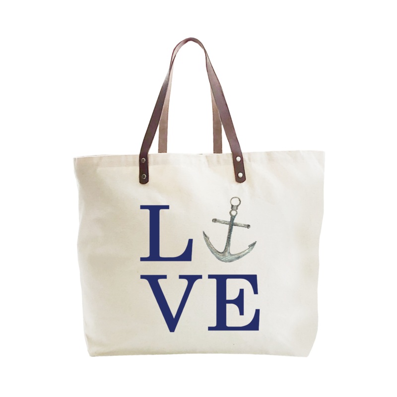 Large cotton canvas tote with leather handle is 22″ x 15″ x 5.5″ and looks great with our original Tina Labadini Designs art. Our stylish totes are fun accessories and make great gifts.