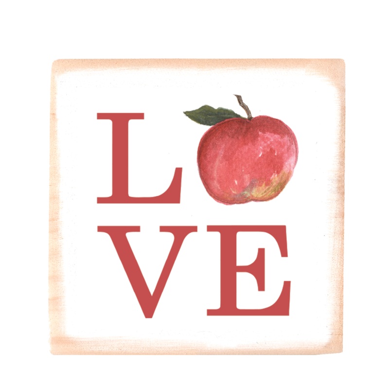 love apple square wood block