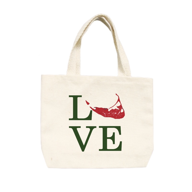love nantucket island in red and green small tote
