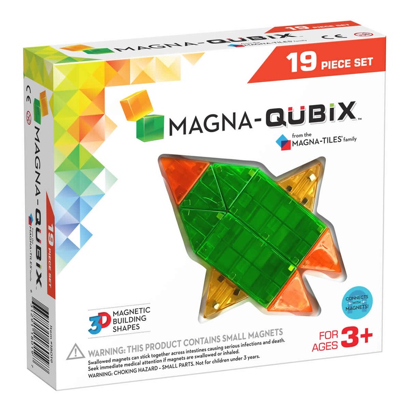 NEW from the Magna-Tiles? family, Magna-Qubix?, feature an array of new shapes including cubes, prisms and pyramids. Anything your children can dream, they can build with Magna-Qubix?! 19 translucent, colorful 3D shapes including 3 square pyramids, 5 trian