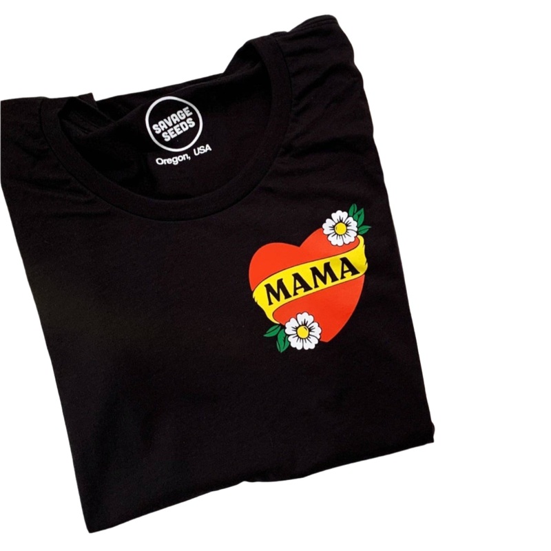MAMA HEART - Women's Pocket TeeDetails:Cotton Tee printed by Savage Seeds in Portland, OR.Sweatshop Free & Made in USA.Women's Contemporary Relaxed Fit, Super soft fine jersey.Weight: 0.3 lbs.