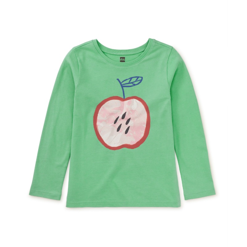 For the apple of your eye! From the Turkish collection, this marbled fruit is such a playful back-to-school graphic. Long-sleeves will keep them warm as fall weather turns chilly. Outfit this long sleeve tee with Playwear Jeggings, joggers, or skirts. Made of 100% soft cotton jersey, colors stay vibrant, wash after wash. Above thigh length.