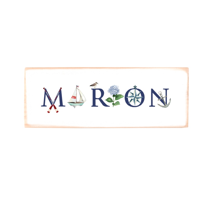 Prints on wood blocks in your choice of two sizes: 9x3 inches or 16x4 inches. Maple wood is hand painted white and slightly distressed then printed with our original Tina Labadini designs art.