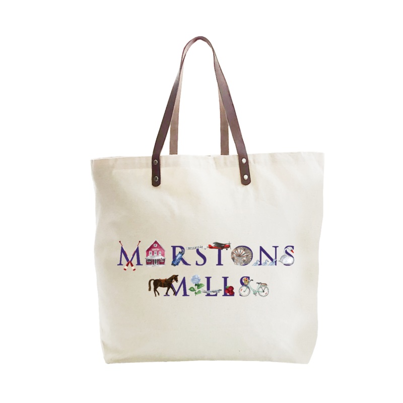 Large cotton canvas tote with leather handle is 22" x 15" x 5.5" and looks great with our original Tina Labadini Designs art. Our stylish totes are fun accessories and make great gifts.