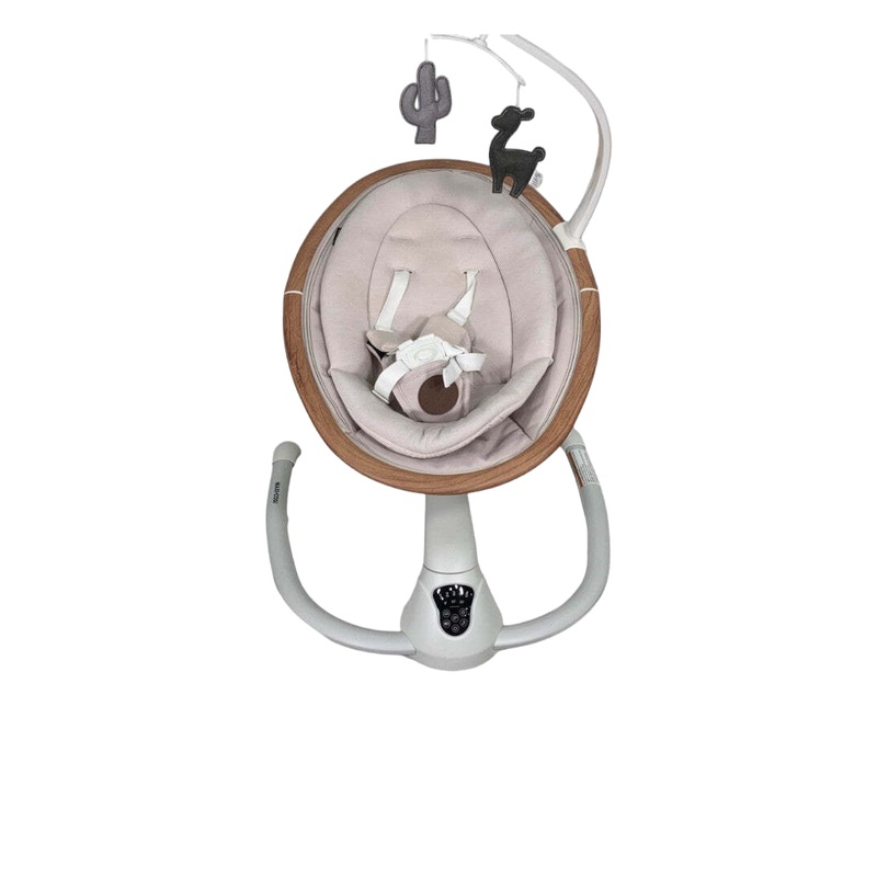 “Get things done around the house as your little one rests in this smart swing. Features automatic motion detection to soothe your baby when they are fussy. Easy to use touchscreen, compact, machine washable fabric and so much more!”