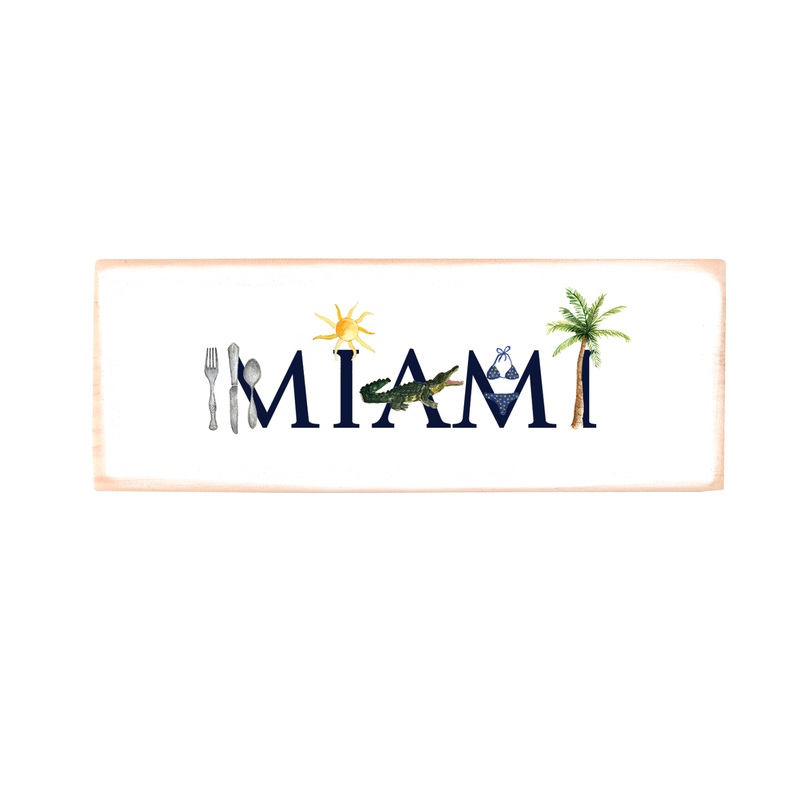 Prints on wood blocks in your choice of two sizes: 9x3 inches or 16x4 inches. Maple wood is hand painted white and slightly distressed then printed with our original Tina Labadini designs art.