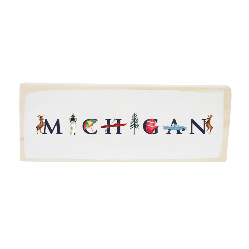 Prints on wood blocks in your choice of two sizes: 9×3 inches or 16×4 inches. Maple wood is hand painted white and slightly distressed then printed with our original Tina Labadini designs art.