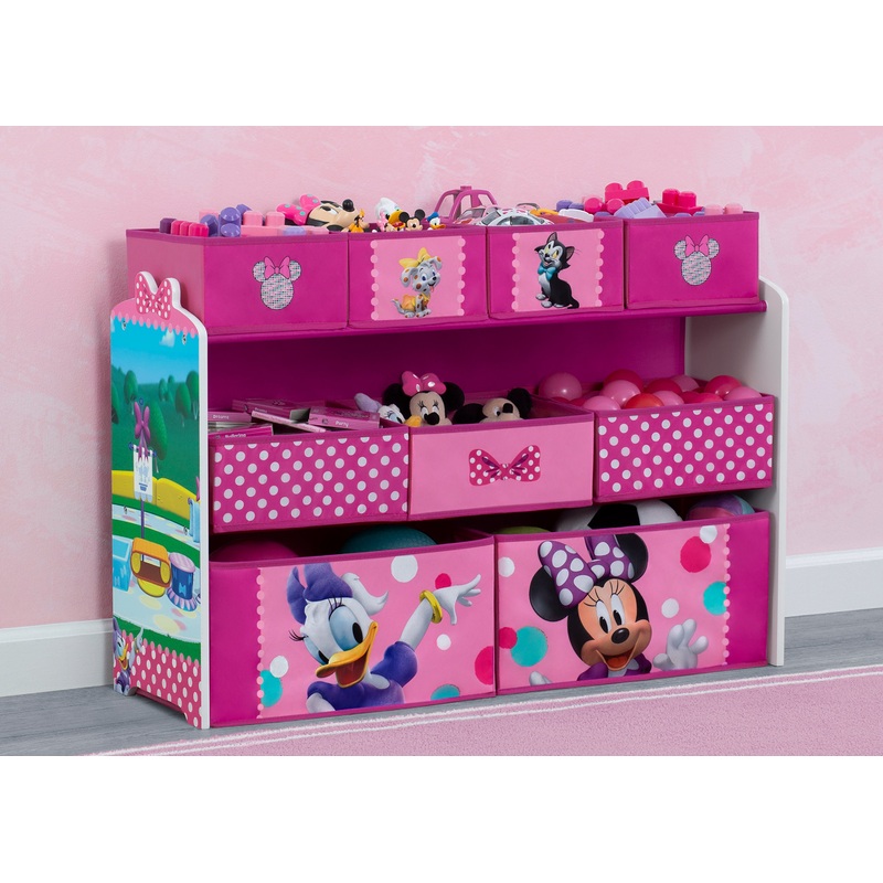 The Disney Minnie Mouse Deluxe 9 Bin Design and Store Toy Organizer by Delta Children allows kids to join Minnie and her friends on a cleanup adventure! Designed for little kids with big imaginations, this cool toy storage bin features colorful graphics of