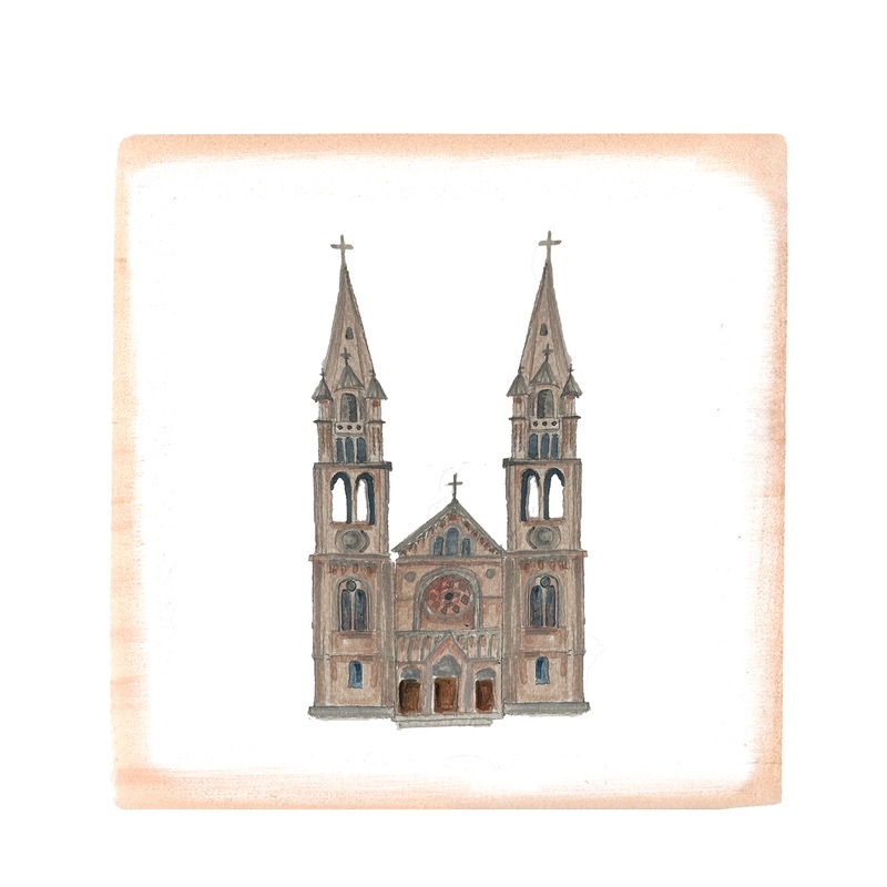 Prints on 5x5 inch wood square. Maple wood is hand painted white and slightly distressed then printed with our original Tina Labadini designs art.