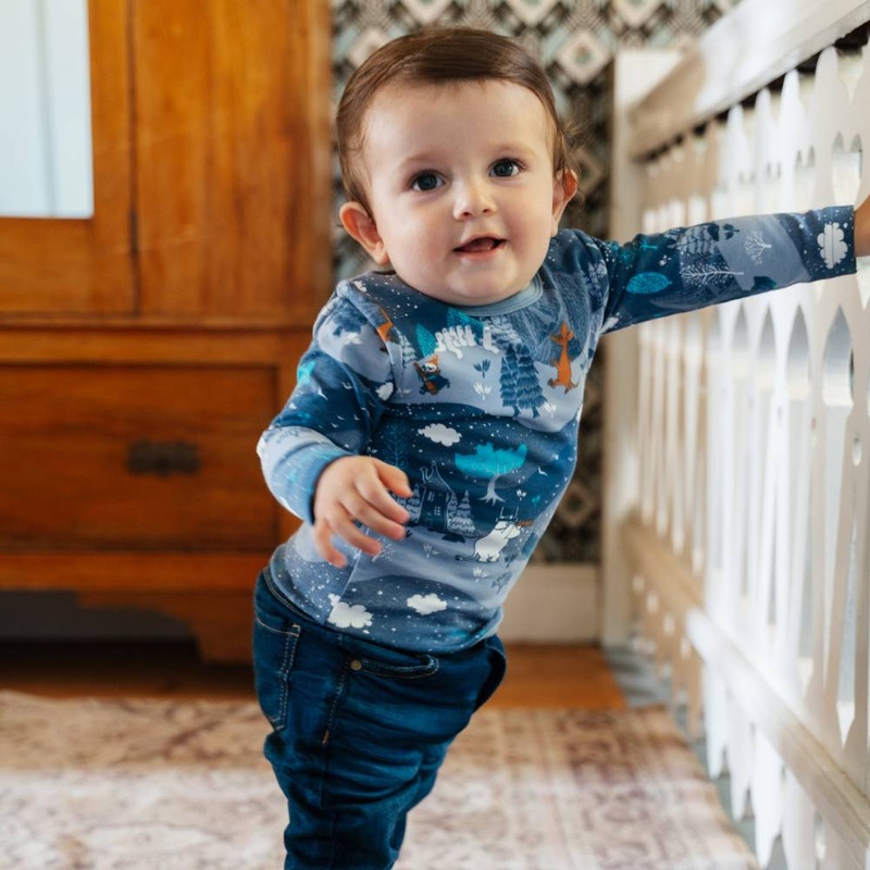 A soft and comfortable Moomin bodysuit shirt for babies. With long sleeves and snap buttons on shoulder and crotch. With extra space for diaper. The bodysuit shirt is made with certified organic cotton blend.