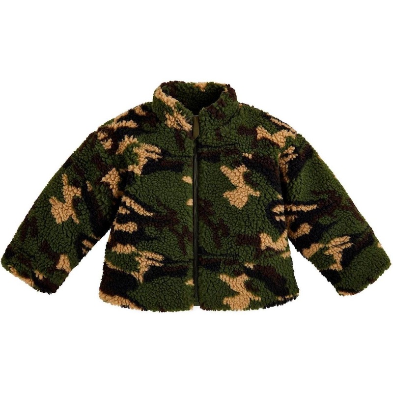 The Camo Sherpa Toddler Jacket is the perfect addition to your little one's wardrobe. Made with high-quality materials, this jacket is designed to keep your toddler warm and cozy during the colder months. The jacket features a standing collar and zipper cl