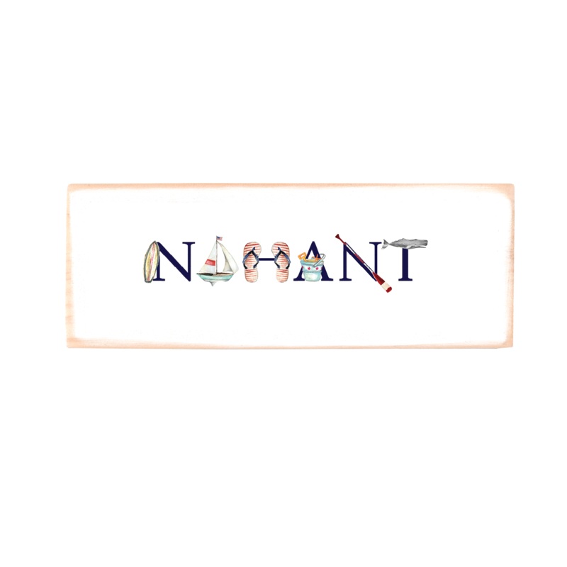 Prints on wood blocks in your choice of two sizes: 9x3 inches or 16x4 inches. Maple wood is hand painted white and slightly distressed then printed with our original Tina Labadini designs art.