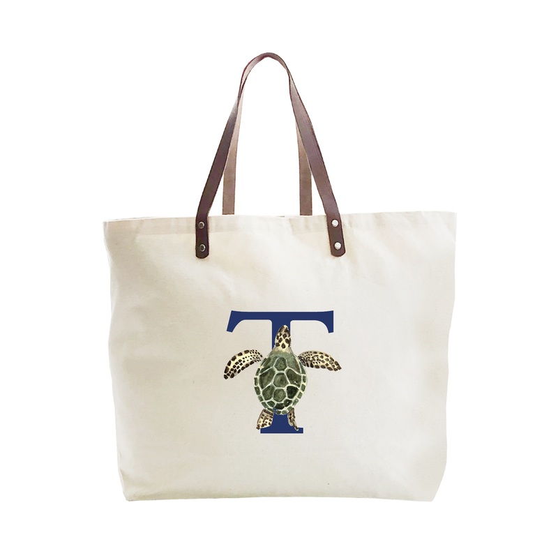 Large cotton canvas tote with leather handle is 22" x 15" x 5.5" and looks great with our original Tina Labadini Designs art. Our stylish totes are fun accessories and make great gifts.