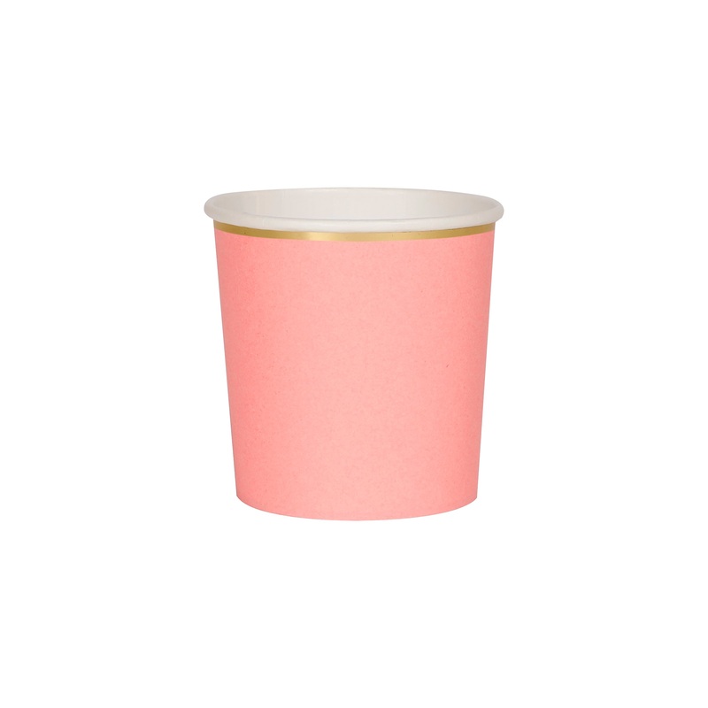 Serve drinks in style with these pretty neon coral tumbler cups, beautifully embellished with a shiny gold foil border. Made from high-quality card with a superb gloss finish, suitable for hot or cold drinks.