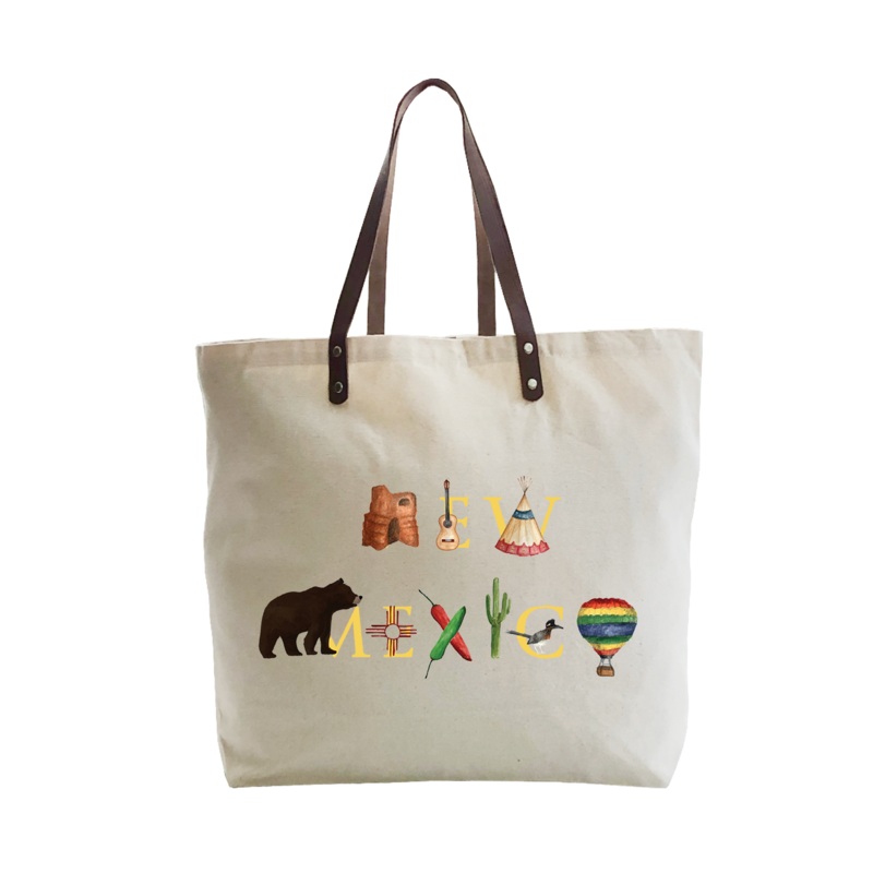 Large cotton canvas tote with leather handle is 22″ x 15″ x 5.5″ and looks great with our original Tina Labadini Designs art. Our stylish totes are fun accessories and make great gifts.