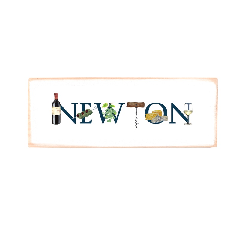 Prints on wood blocks in your choice of two sizes: 9×3 inches or 16×4 inches. Maple wood is hand painted white and slightly distressed then printed with our original Tina Labadini designs art.