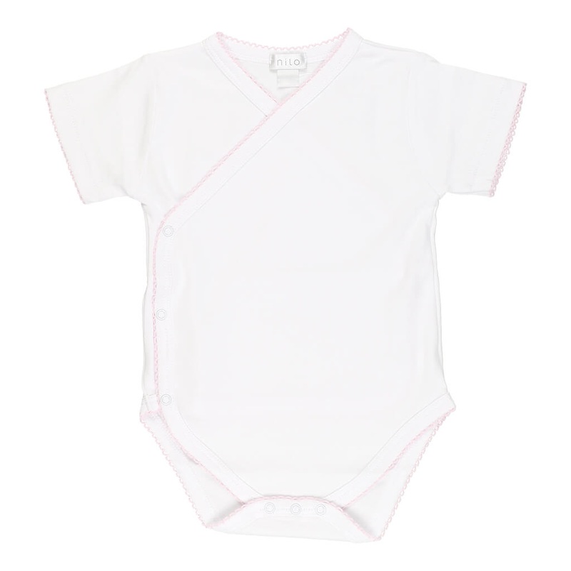 This NB short sleeve cross bodysuit is great as a layering piece or to wear by itself. Crossbody detailing with snaps makes for easy on and off.