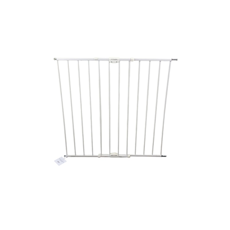 Some hard-to-secure spaces are the most important, like the top of the stairs. This metal gate screws into the wall and then closes with a latch, which you also screw into a wall or bannister. Its super strong but adults can easily open it up as needed, baby on the hip and all. Measures 28 High and up the 48 wide.