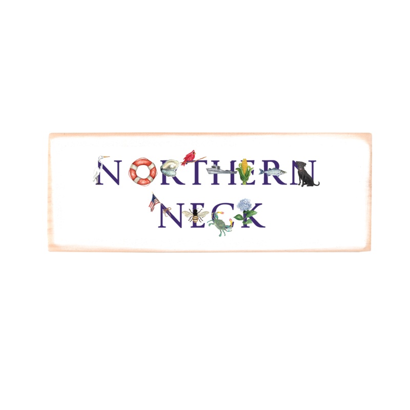 Prints on wood blocks in your choice of two sizes: 9×3 inches or 16×4 inches. Maple wood is hand painted white and slightly distressed then printed with our original Tina Labadini designs art.