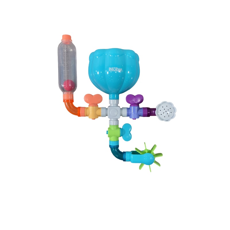 “Attaches to tub wall so little ones can enjoy splashing & watching the water flow thought the tubes.”
