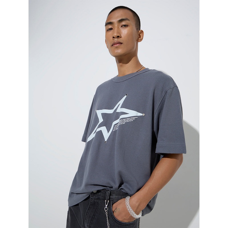 This grey t-shirt from Nuon is decked with graphic prints at the front. Made from a cotton-rich fabric, the relaxed-fit garment includes a crewneck and dropped sleeves.