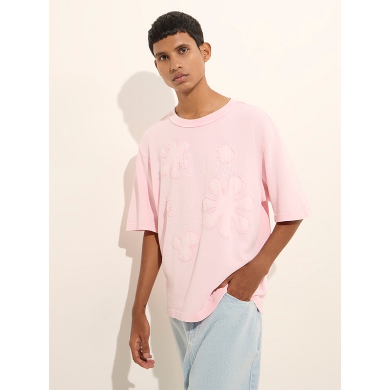 Sculpted in a relaxed silhouette, this pink t-shirt from Nuon flaunts floral designs at the front. Its breathable composition ensures easy comfort, while the crewneck and dropped sleeves complete it.