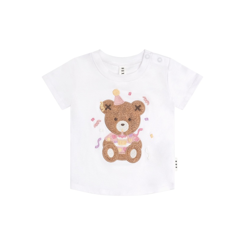 Ready to party. This Party Huxgirl T-Shirt features a jolly bear with balloons graphic and a classic crewneck fitit's the perfect celebration day outfit. Sizes 2Y-4Y do not have snaps at neck.