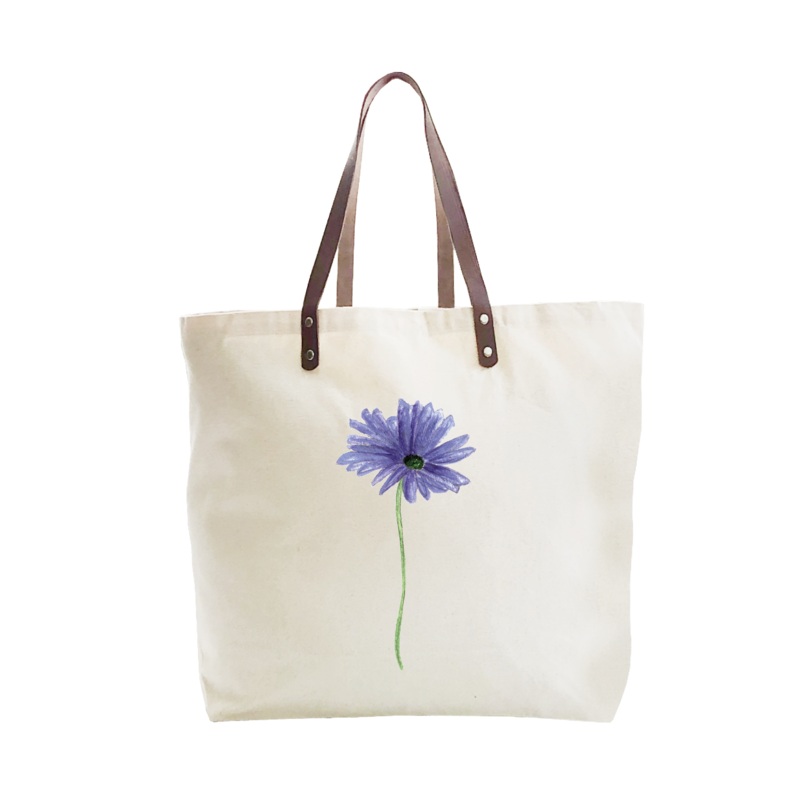 Large cotton canvas tote with leather handle is 22″ x 15″ x 5.5″ and looks great with our original Tina Labadini Designs art. Our stylish totes are fun accessories and make great gifts.