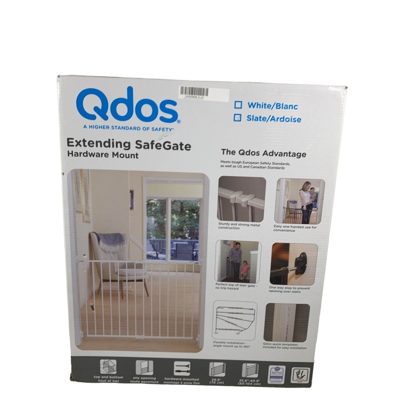 Condition: Brand New This extending safegate features a hardware mounting system, is 30" high and expands between 25.6-40.9 wide. Would you rather pay full flash price for this item? You can find a similar item on Amazon by clicking here Qdos Safety Extend