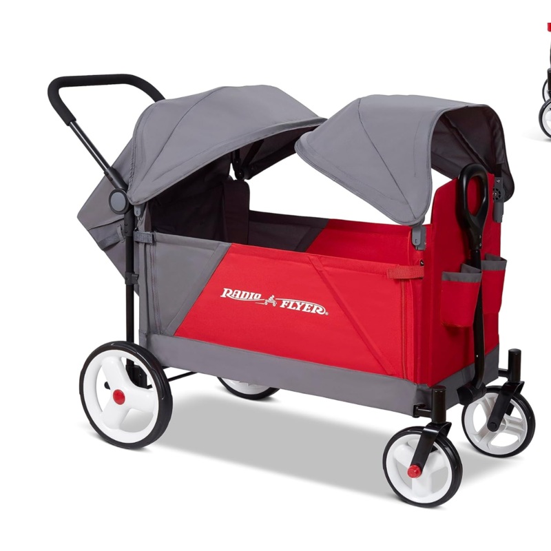 This push and pull wagon will keep you on the go and little head’s protected with the dual UV canopy set! This wagon easily folds for storage and on the go and is ideal for ages 1 and up.