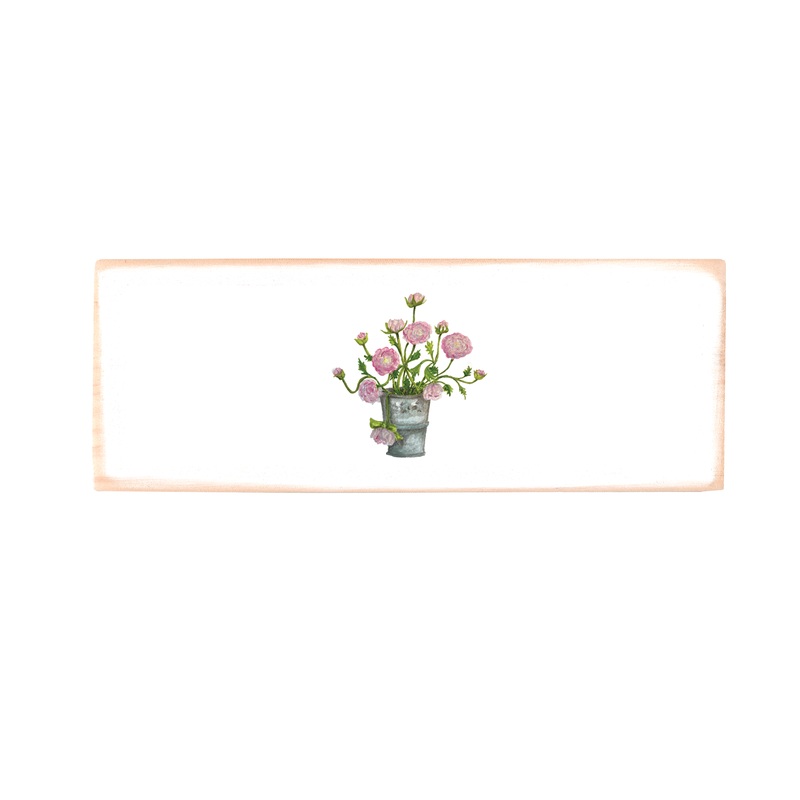 ranunculus in bucket wood block rectangle