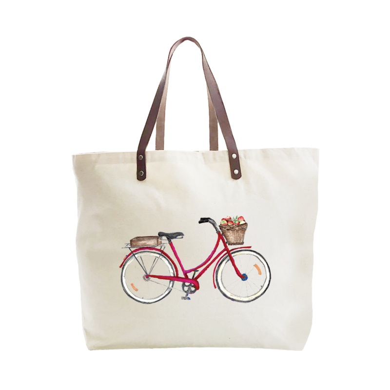 red bike with apples large tote