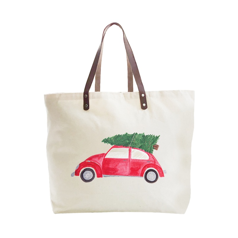 red vw with tree large tote