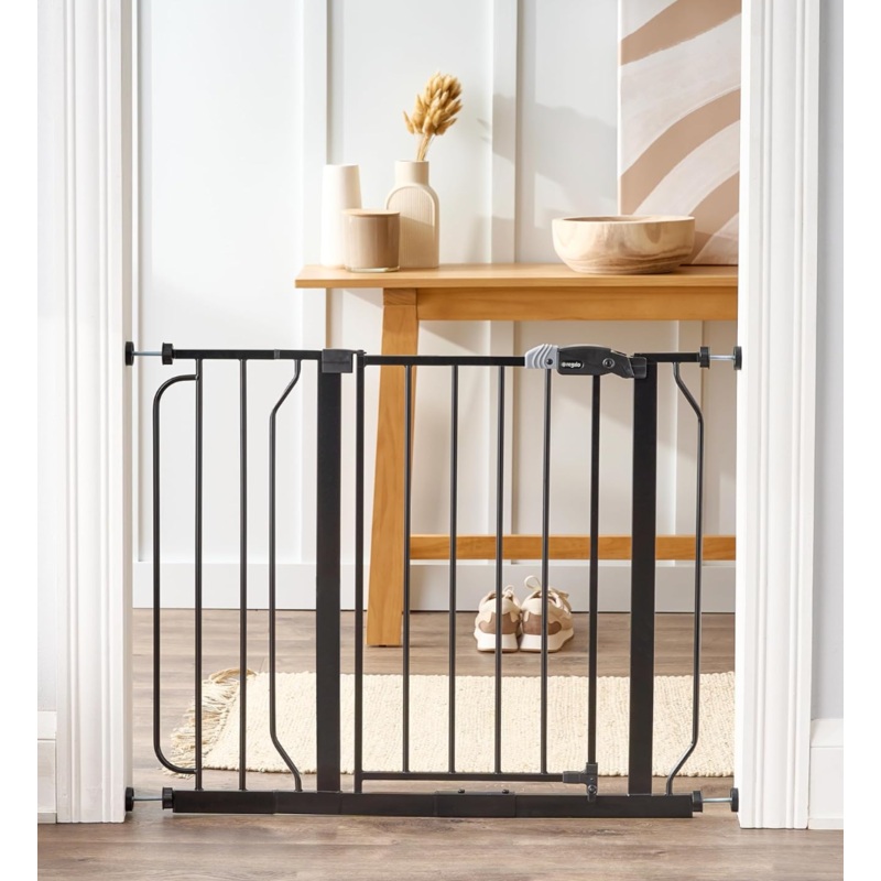 Ensure your little one’s safety with the Regalo Easy Step pressure mount gate. Its easy slide latch automatically locks when closed and fits openings between 29-38.5″. This 30″ tall gate is perfect for mobile toddlers. Don’t forget to measure your opening before purchasing for the perfect fit.