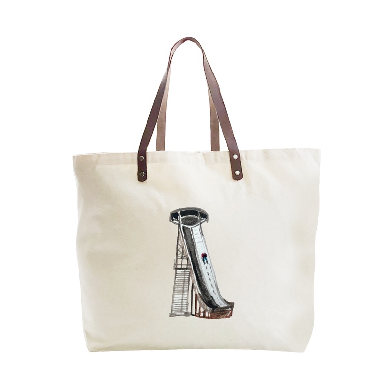 Large cotton canvas tote with leather handle is 22" x 15" x 5.5" and looks great with our original Tina Labadini Designs art. Our stylish totes are fun accessories and make great gifts.
