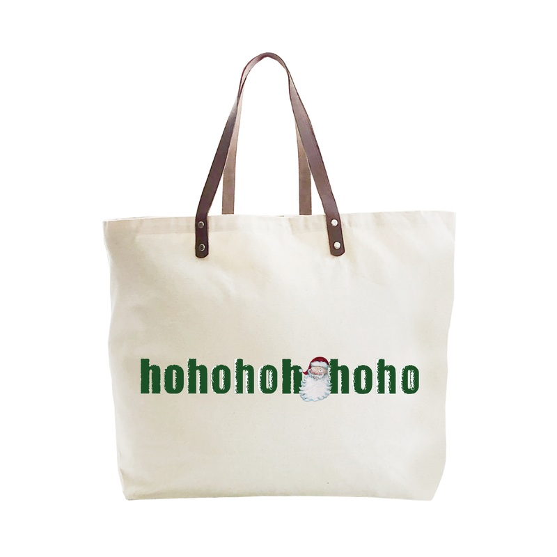 santa face ho ho ho green text large tote