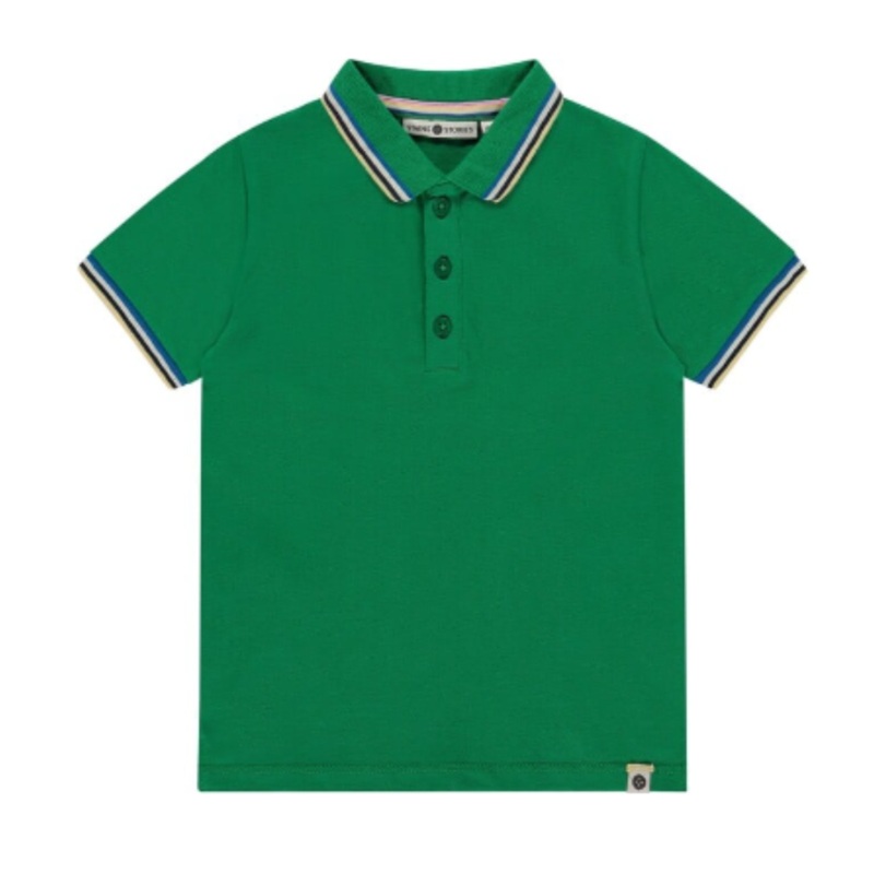 This green toned short sleeve polo shirt features a contrasting striped detail at the sleeves and collar.