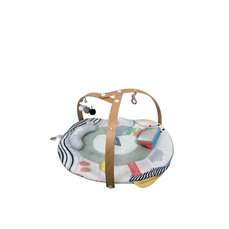Condition: Gently Used "The Discoverosity Play Gym is the perfect place for baby to grow and discover. Developed with Montessori experts, its sustainably-sourced wooden arches, plush playmat, and five toys provide an engaging sensory environment. Stimulate
