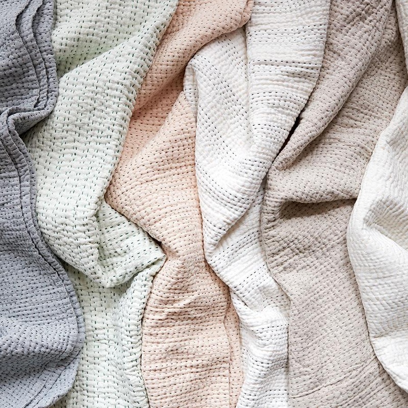 S97462791St Frank White Linen Kantha Quilt Blanket (Queen/Full)