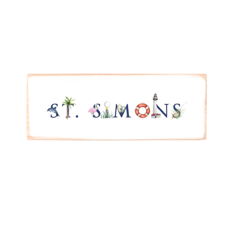 Prints on wood blocks in your choice of two sizes: 9×3 inches or 16×4 inches. Maple wood is hand painted white and slightly distressed then printed with our original Tina Labadini designs art.