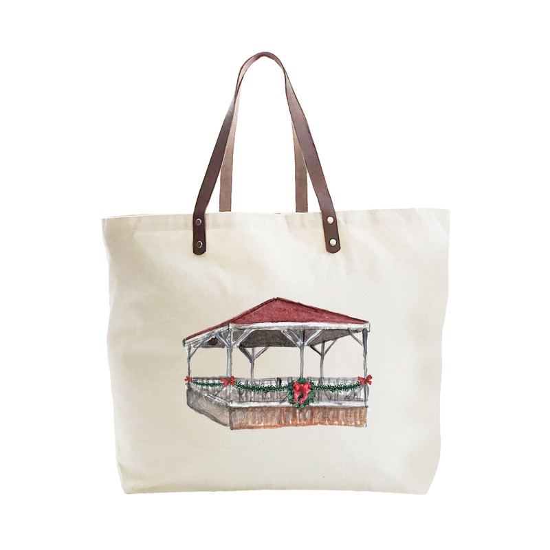 Large cotton canvas tote with leather handle is 22" x 15" x 5.5" and looks great with our original Tina Labadini Designs art. Our stylish totes are fun accessories and make great gifts.