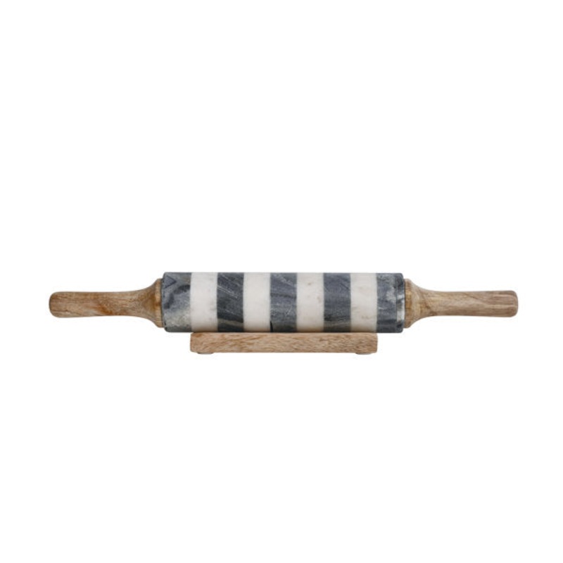 S97426550Striped Marble Rolling Pin with Wood Stand