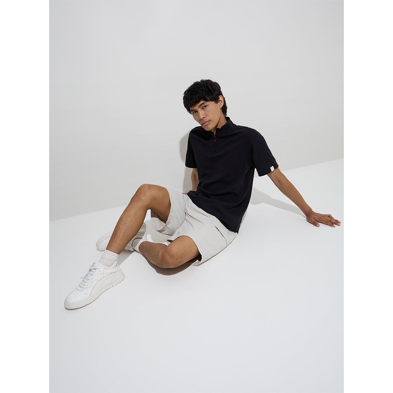 Be the first to review “Studiofit Black Solid Quarter Zip Cotton-Blend T-Shirt”